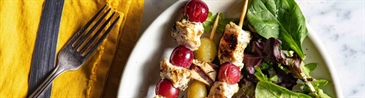 Ingredients: Skewers: 3 cloves garlic, minced ¼ cup Olive oil Zest and juice of one lemon 2 teaspoons dry...